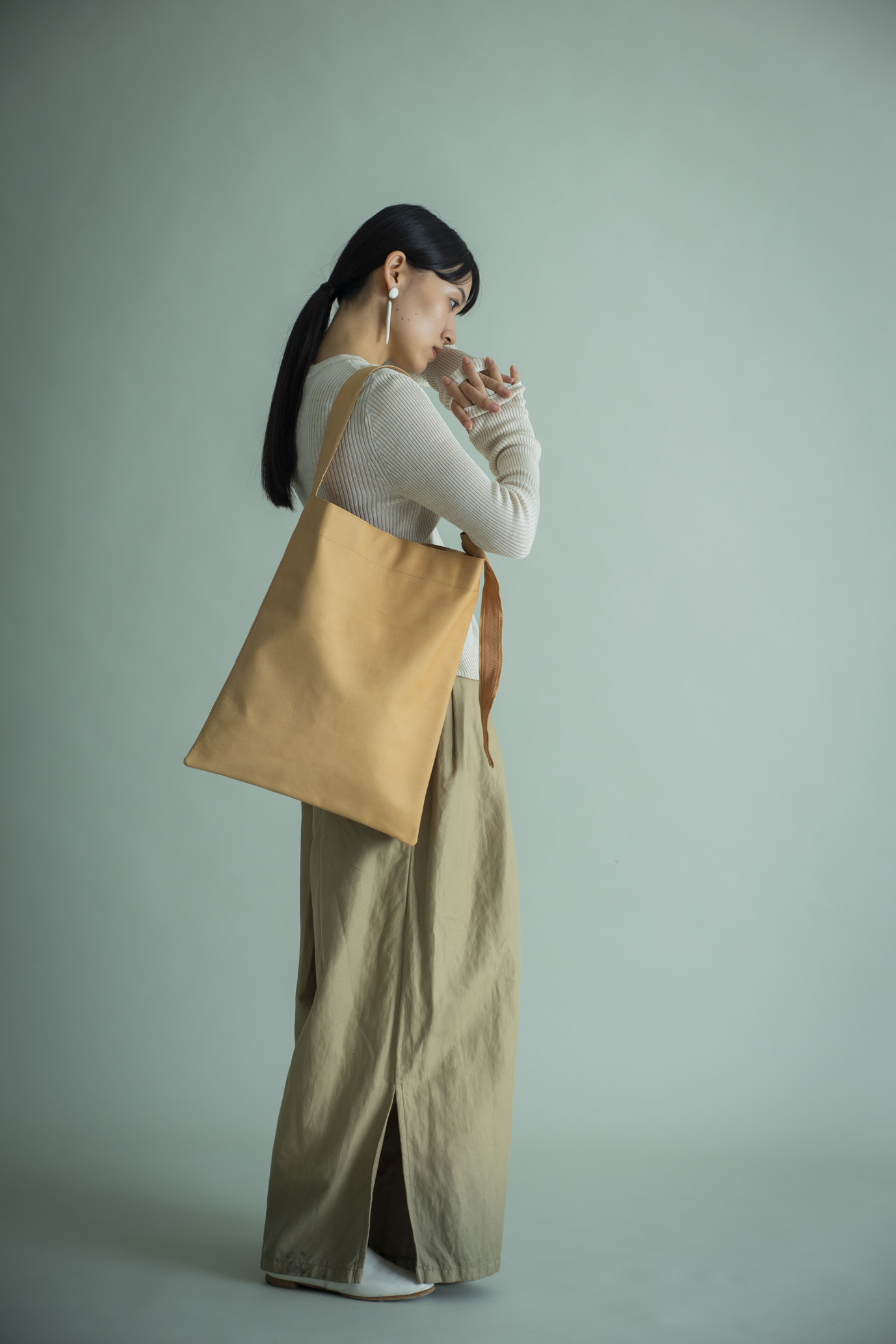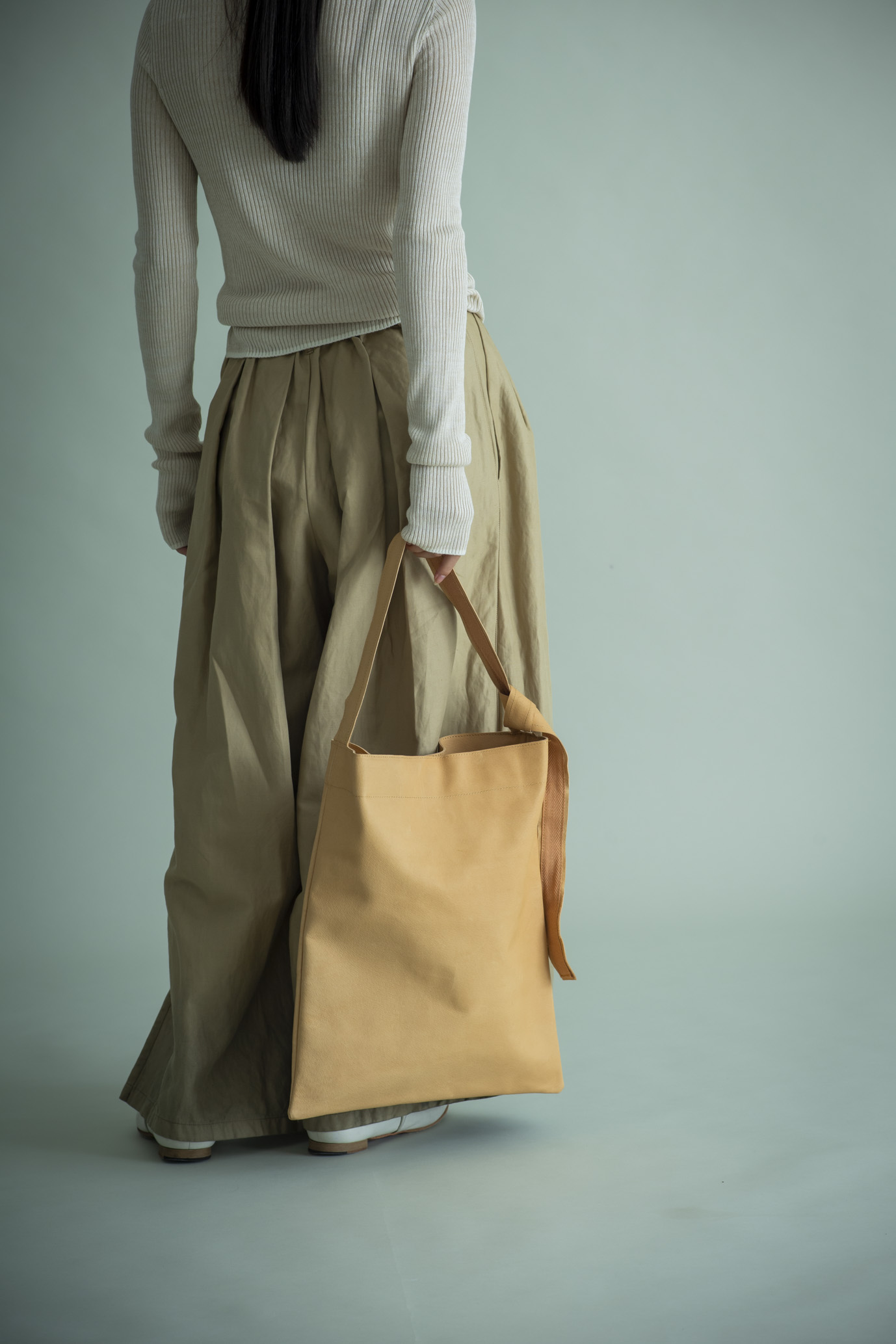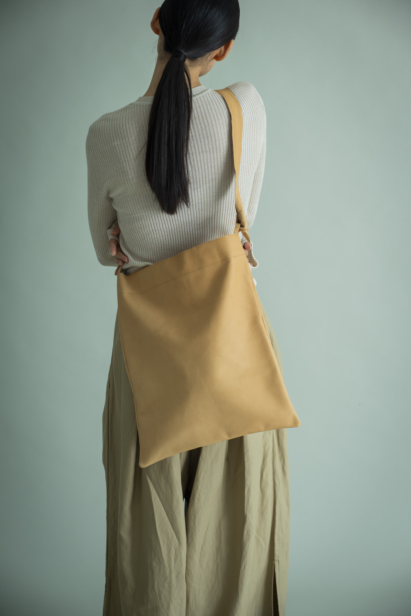 長さを変え、手に、肩に、斜めに――その日の気分で姿を変えるバッグです。